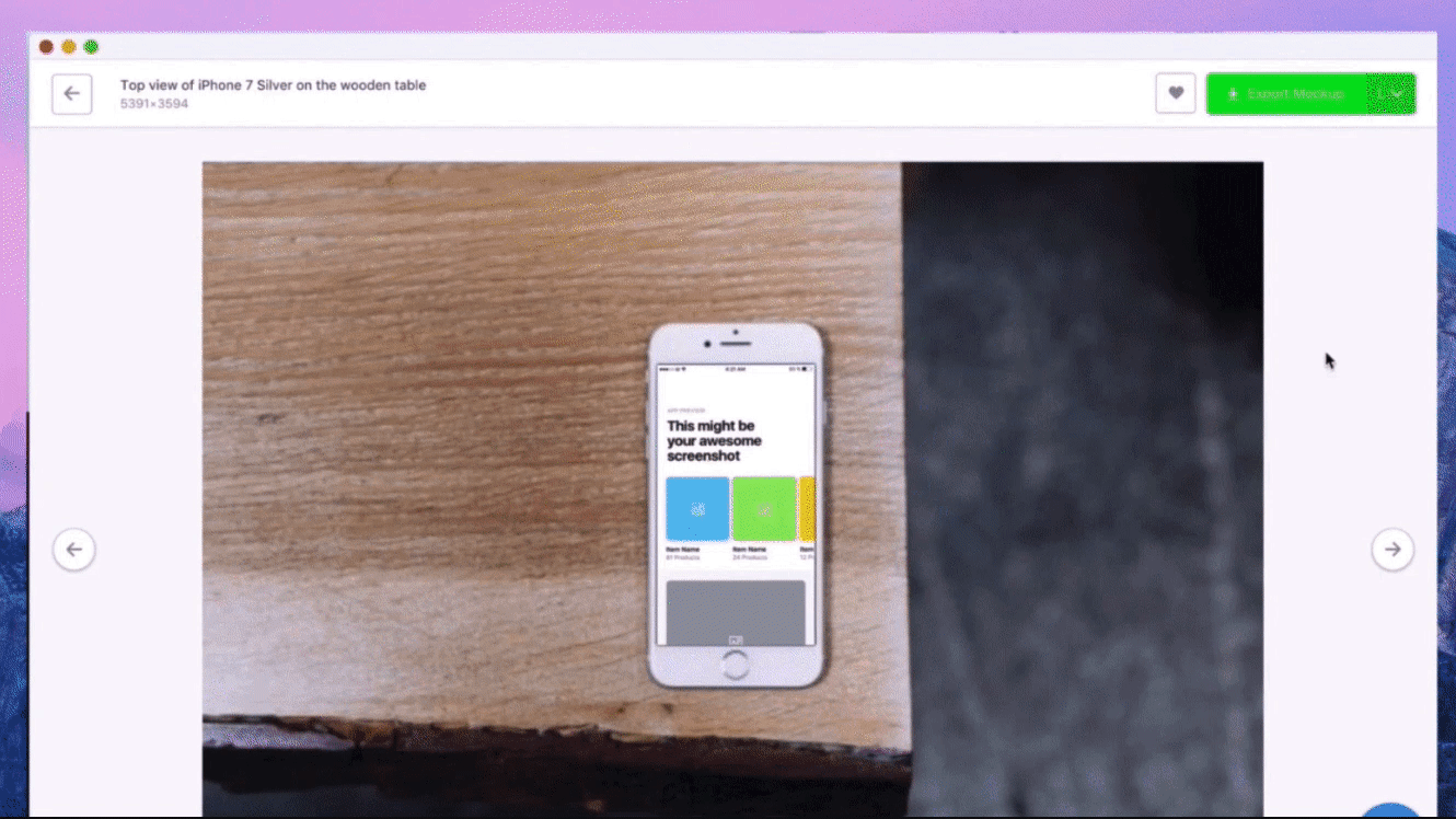 You can also set some other functions, including the size of the presentation (for Dribbble, Instagram or personalized), the color of the device and set the flip and fitting. Finally you can export your mockup and show it to the world!